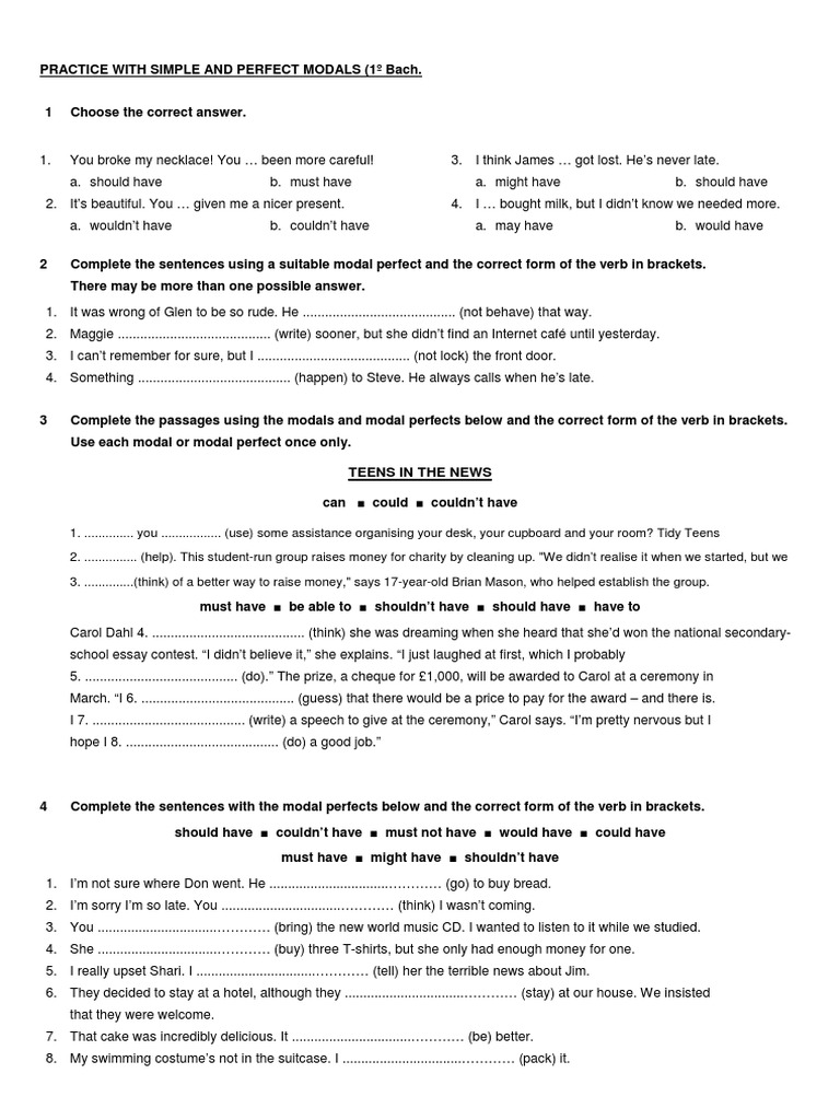 Modal Verbs Exercises Pdf 2o Bachillerato With Answers